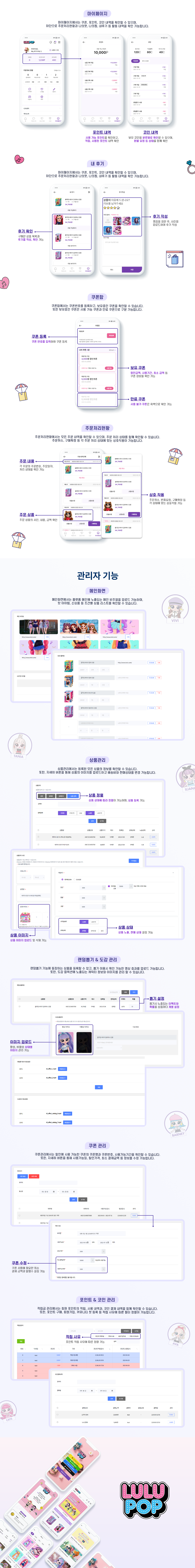 특징 : 상품 결제 및 중고거래, 랜덤뽑기 기능이 있는 캐릭터 상품 쇼핑몰