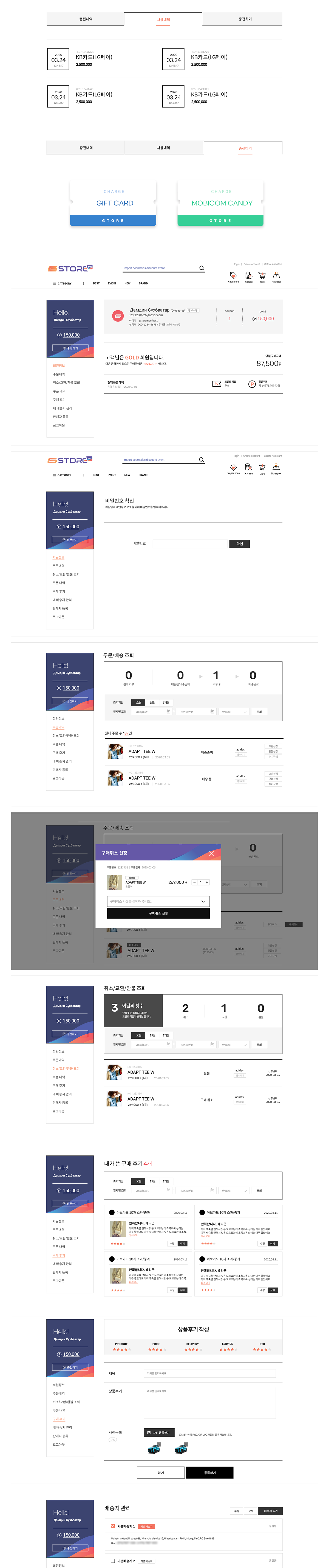 * 전체회원 정보 (전체 화원 목록 화면, 화원 별 구매내역도 볼수 있음, 회원 수정,삭제 가능)